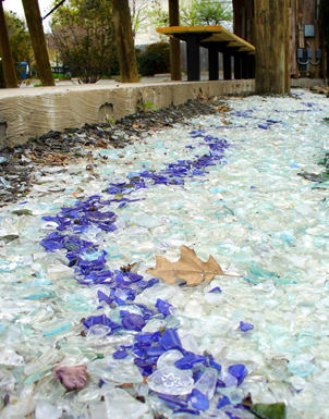 This sustainable project added glass mulch pathways and a countertop featuring the state of Arkansas at The Bernice Garden. Not only was recycled glass used for pathways, it also was incorporated in concrete bases and surfaces.