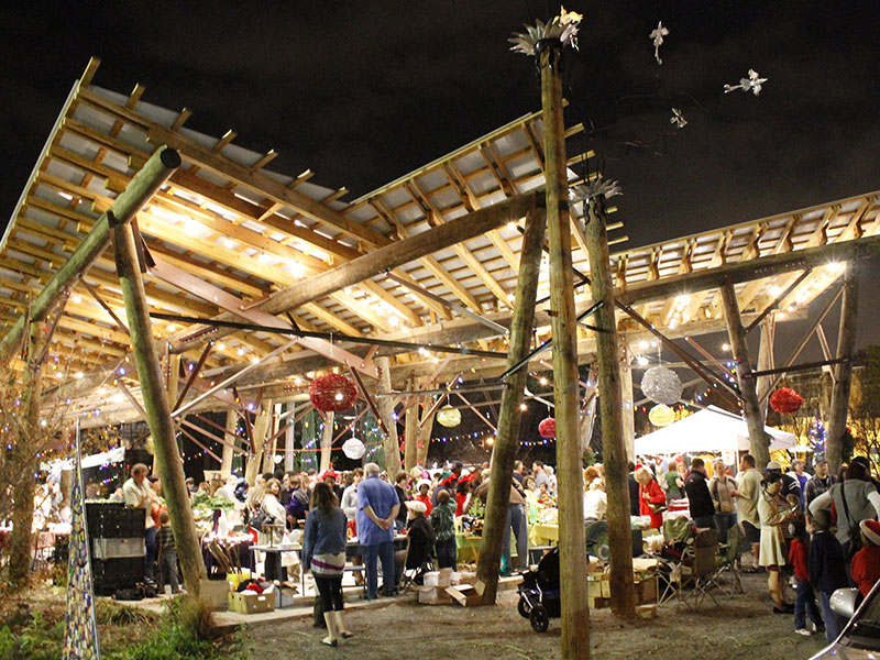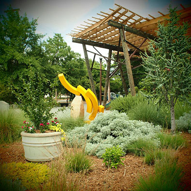The Bernice Garden, completed in 2011 in downtown Little Rock, is a tribute to the historical significance of the surrounding South Main Street (SoMa) community. The garden was named for its red brick neighbor, the Bernice Building, constructed in the early 1900’s. Reclaimed wood from farms in Eastern Arkansas reinforces the pavilion’s structure as well as the owner’s commitment to history and environmental stewardship. The garden space features an open-air sculpture gallery filled with local Arkansas artists’ work.